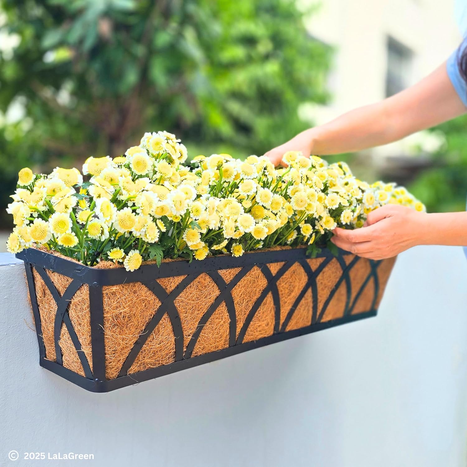 - MATERIAL FROM COCONUT: This balcony railing planters is filled with coco coir liners, which is excellent planting material for plants as it holds a good deal of water, and provides superior drainage and good air ventilation for the roots at the same time. Coir is a natural fiber extracted from coconut husks, making it a choice for your garden.