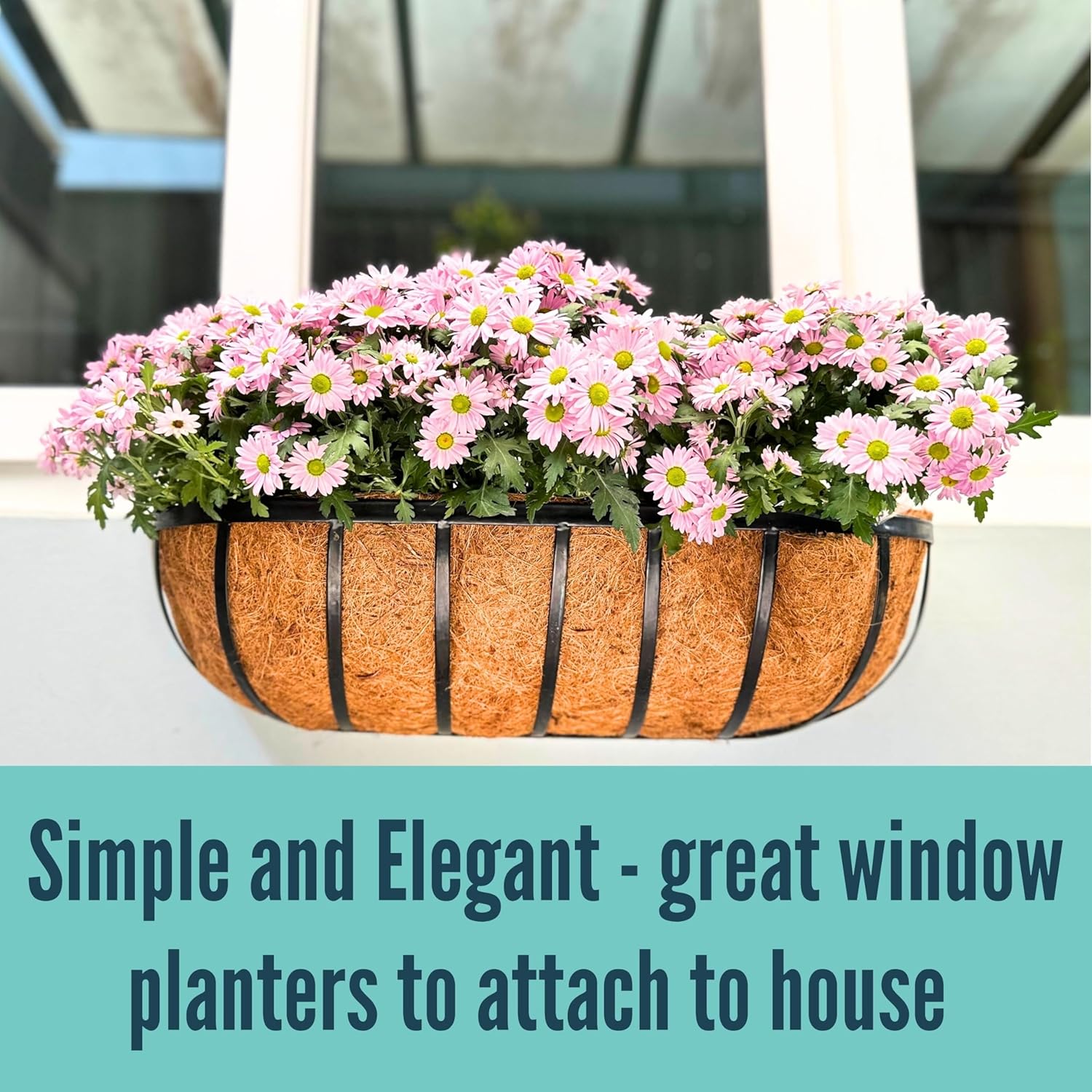 - GREAT PLANTING MEDIA (material from natural coconut): This flat back wall mounted window flower box basket is filled with coco coir liners, which is excellent planting material for plants as it holds a good deal of water, provides superior drainage and good air ventilation for the roots all at the same time