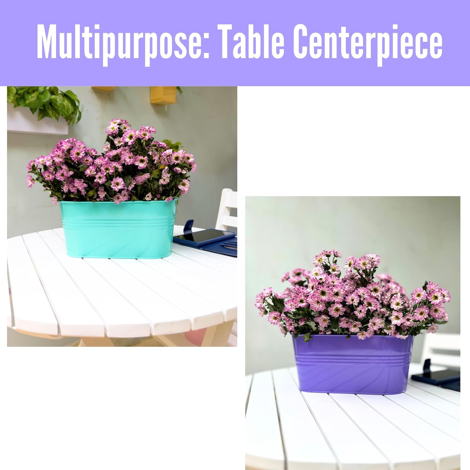- TRENDY DECORATION: Minimalist style, simple and elegant, adds instant charm to your living space. These colorful outdoor hanging planter are perfect as modern vintage decor for a balcony garden, fence, bathroom, patio, deck, or porch. Create beautiful table centerpiece decorations for your living or dining room with live or artificial succulents, cacti or colorful flowers in this rounded rectangle planter basket