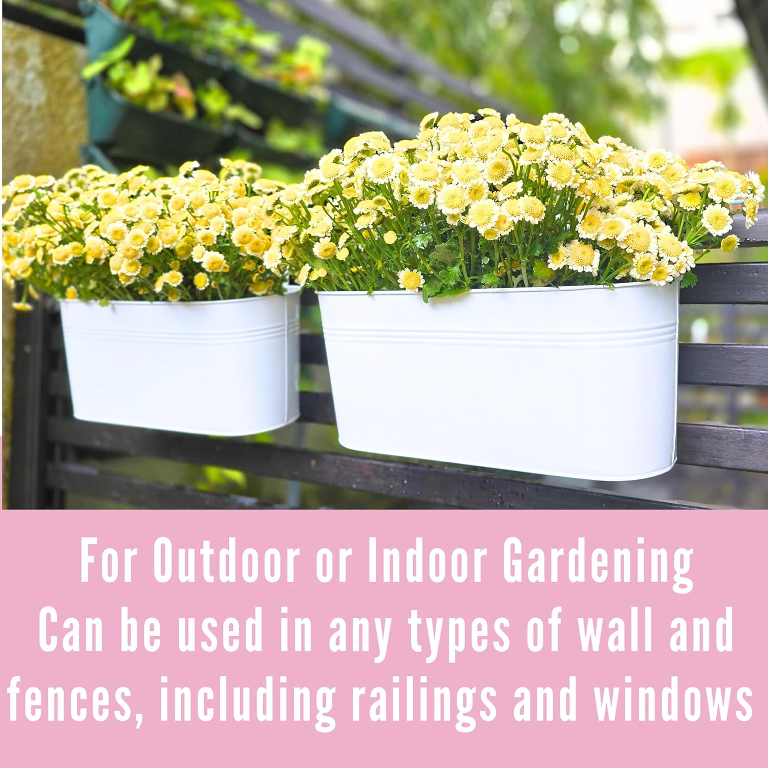- MULTI-PURPOSE: They can be used as fence planters, and hang over the rail and railing outside your house or apartment. Growing tasty and edible vegetables and fruits such as strawberries on the balcony will be fun. Inside the house, use them as window sill planter boxes for your lovely herbs or place dry or artificial flowers to create a focal point in your indoor living space. They can be used as a small storage organizer holder for bathroom or household items too