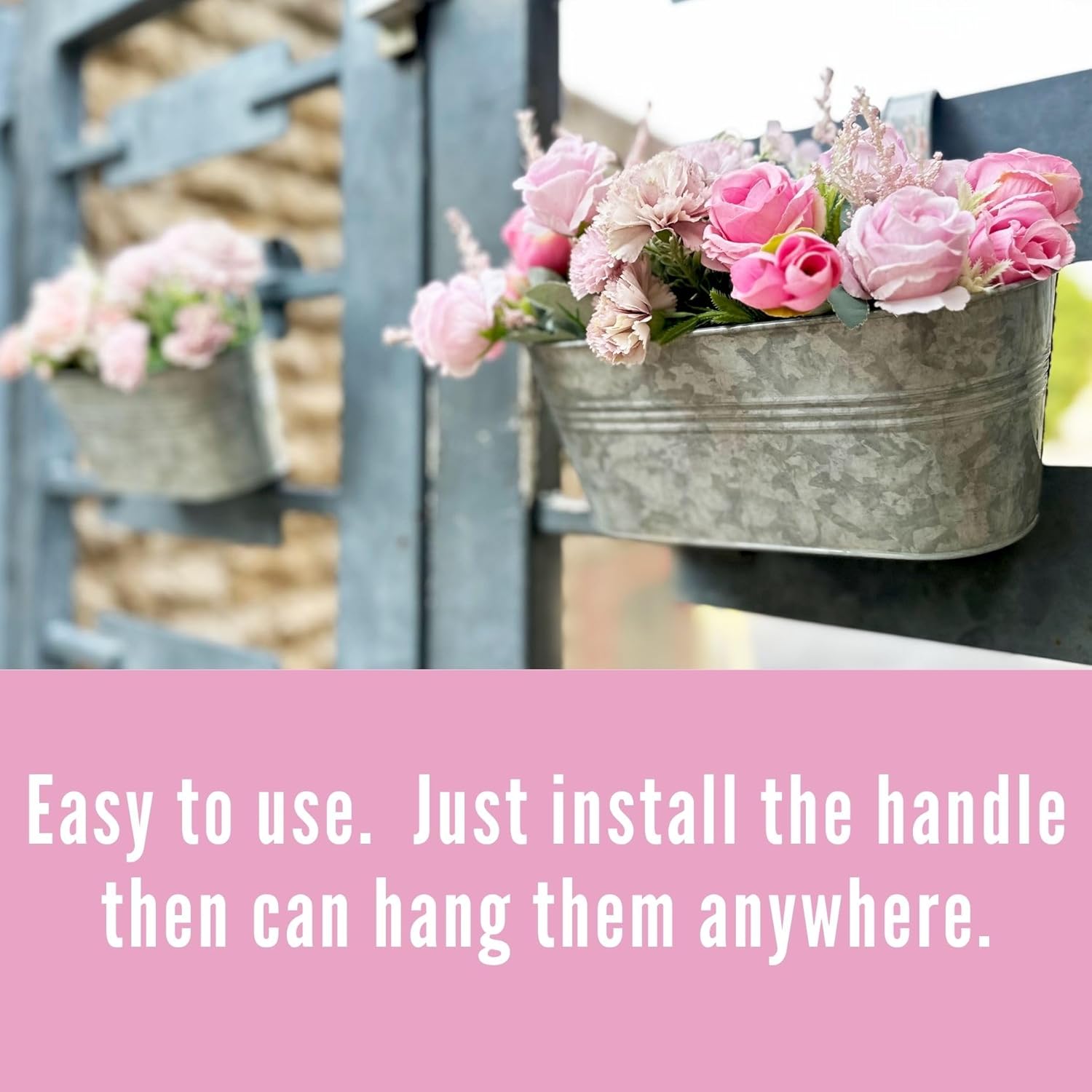 - STRONG & LIGHTWEIGHT: These metal hanging flower pots are strong and durable - not breakable and reusable. Better choice than ceramic and plastic pots. They are easy to use, just spend few mins to install the handles / hooks, then can start hanging them anywhere