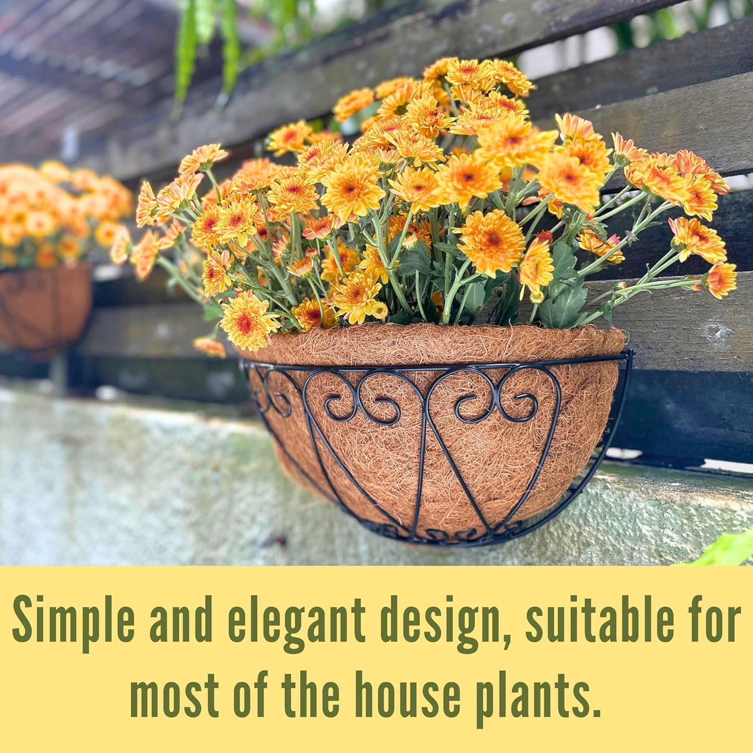 - STRONG AND LIGHTWEIGHT: This semi circle half round fence flower pots is coated with coco liner which prevents it from rusting and suitable for indoor & outdoor. It is sturdy and suitable for real live or artificial (fake or faux) plants. It's also an excellent choice for planting edible vegetable, herbs, spice, fruits, such as strawberries.