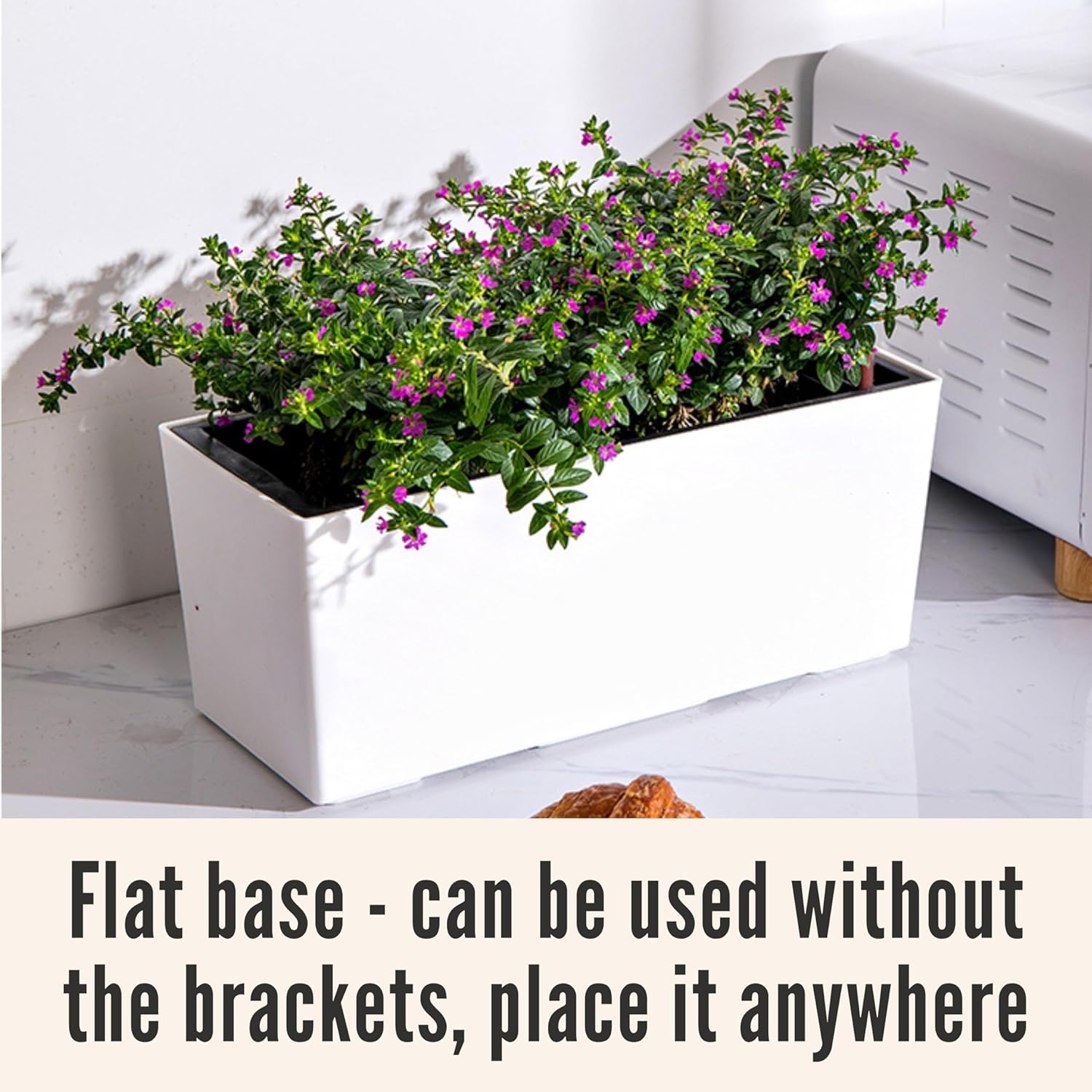 - 2 PACK SET: 14 inch, white window planter. Each set come with one outer planter, one inner planter and one water level indicator, please check listing image and video for more details. Pick the right size for your plants to prevent unpleasant experience and potential wastage on resources.