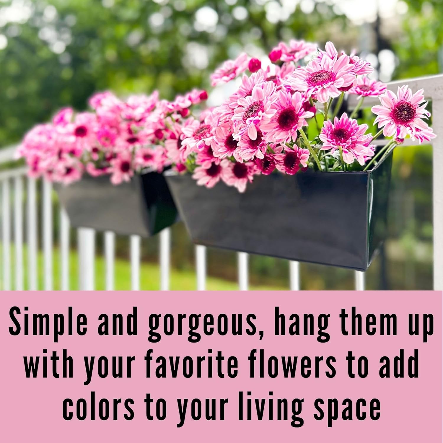 LaLaGreen Railing Planter (4 Pack, 14 Inch) Black Metal Rectangle Hanging Flower Pots Balcony Bucket Deck Rail Fence Trendy Long Strawberry Succulent Plant Holder Farmhouse Countryside Style Outside
