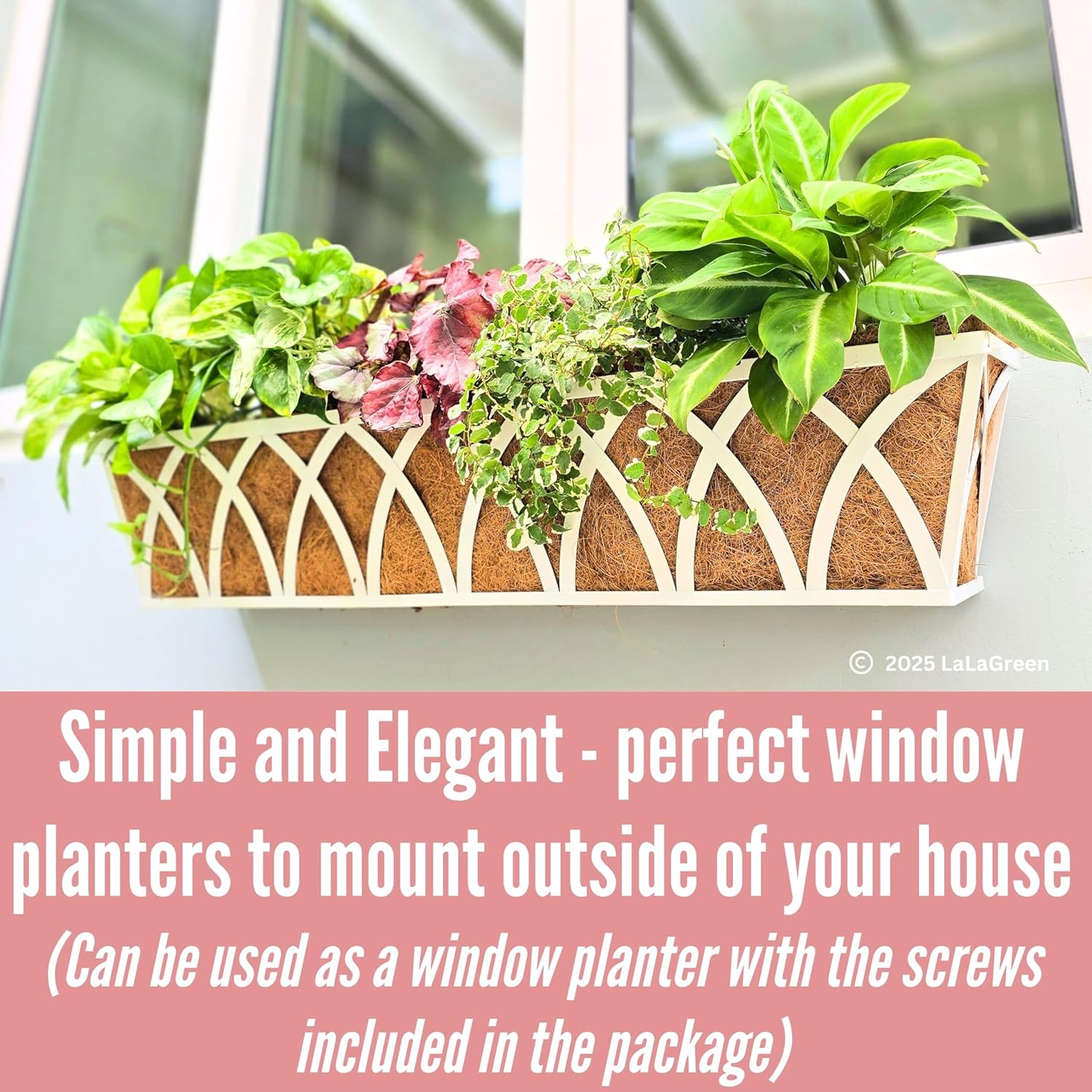 - STRONG and LIGHTWEIGHT: These window planter boxes outdoor are made from strong white metal with powder coating to prevent it from rusting and suitable for indoors & outdoors. It is sturdy and suitable for real, live or artificial (fake or faux) plants, especially great for planting vegetable, fruits like strawberry, herbs and spice