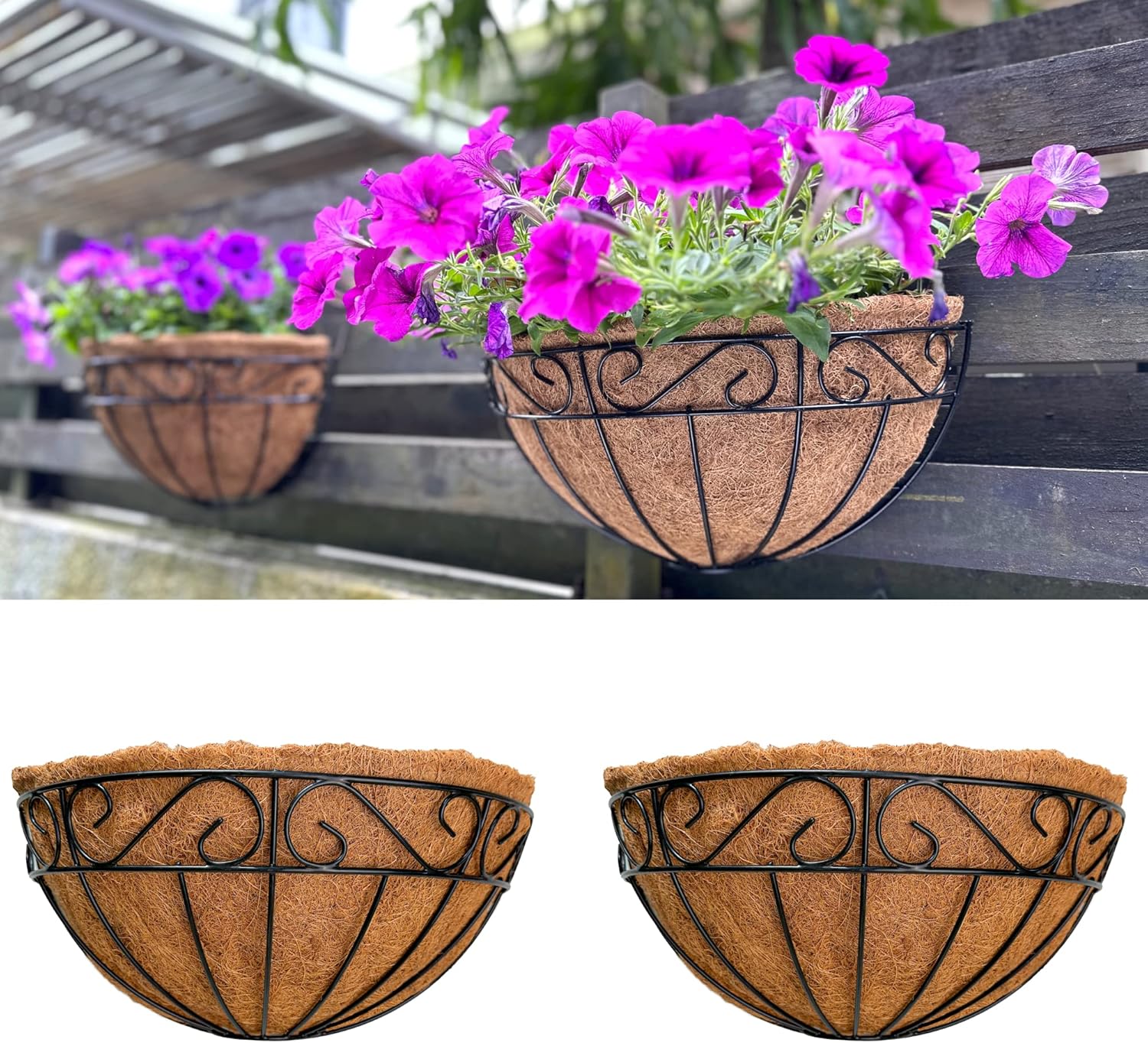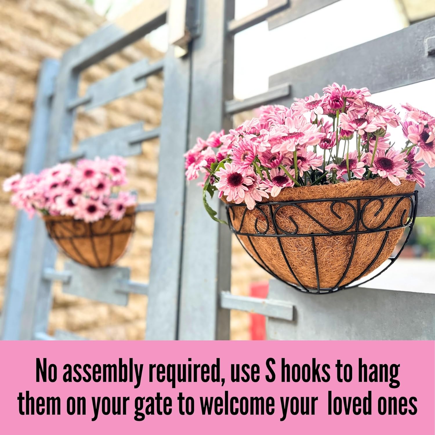 LaLaGreen Wall Hanging Planters, 4 Pack, 12 Inch Balcony Flower Baskets with Coco Liner Outside, Outdoor Vertical Garden, Fence Pots Holder Half Round Semi Circle Rail Railing Deck Porch Balcony Patio