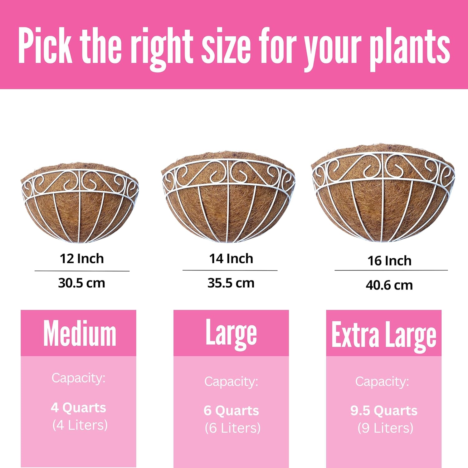 LaLaGreen Wall Mounted Flower Baskets (2 Pack, 16 Inch) Extra Large Deck Rail Hanging Planters with Coco Liner for Outdoor Plants White Metal Wire Herb Pots Holder Fence Railing Porch Patio Garden
