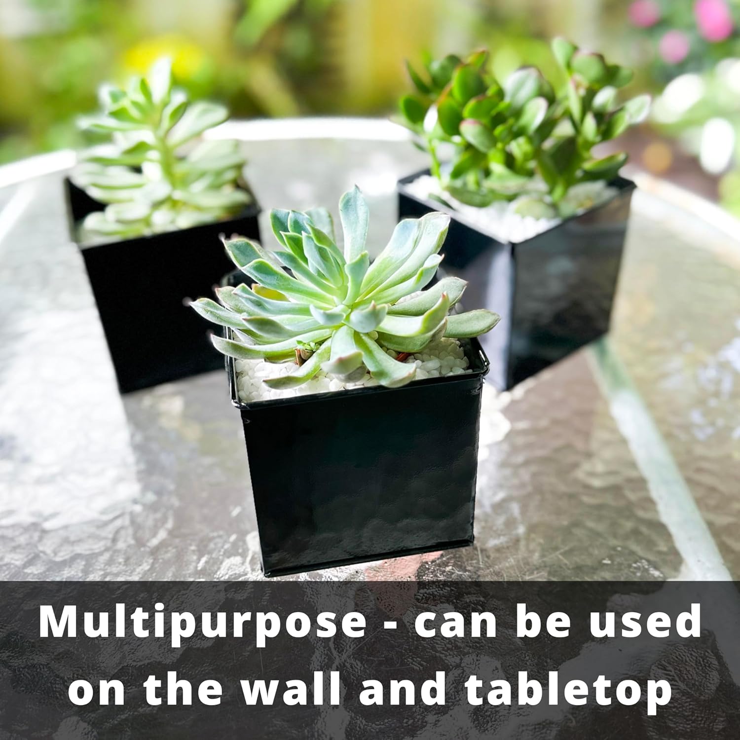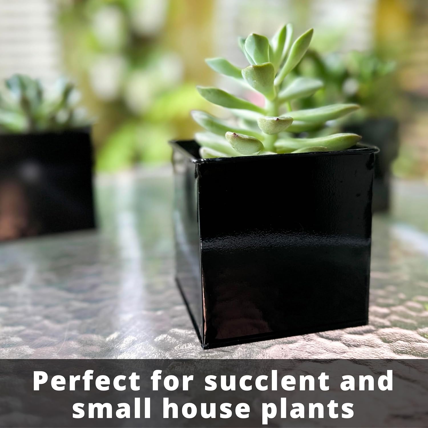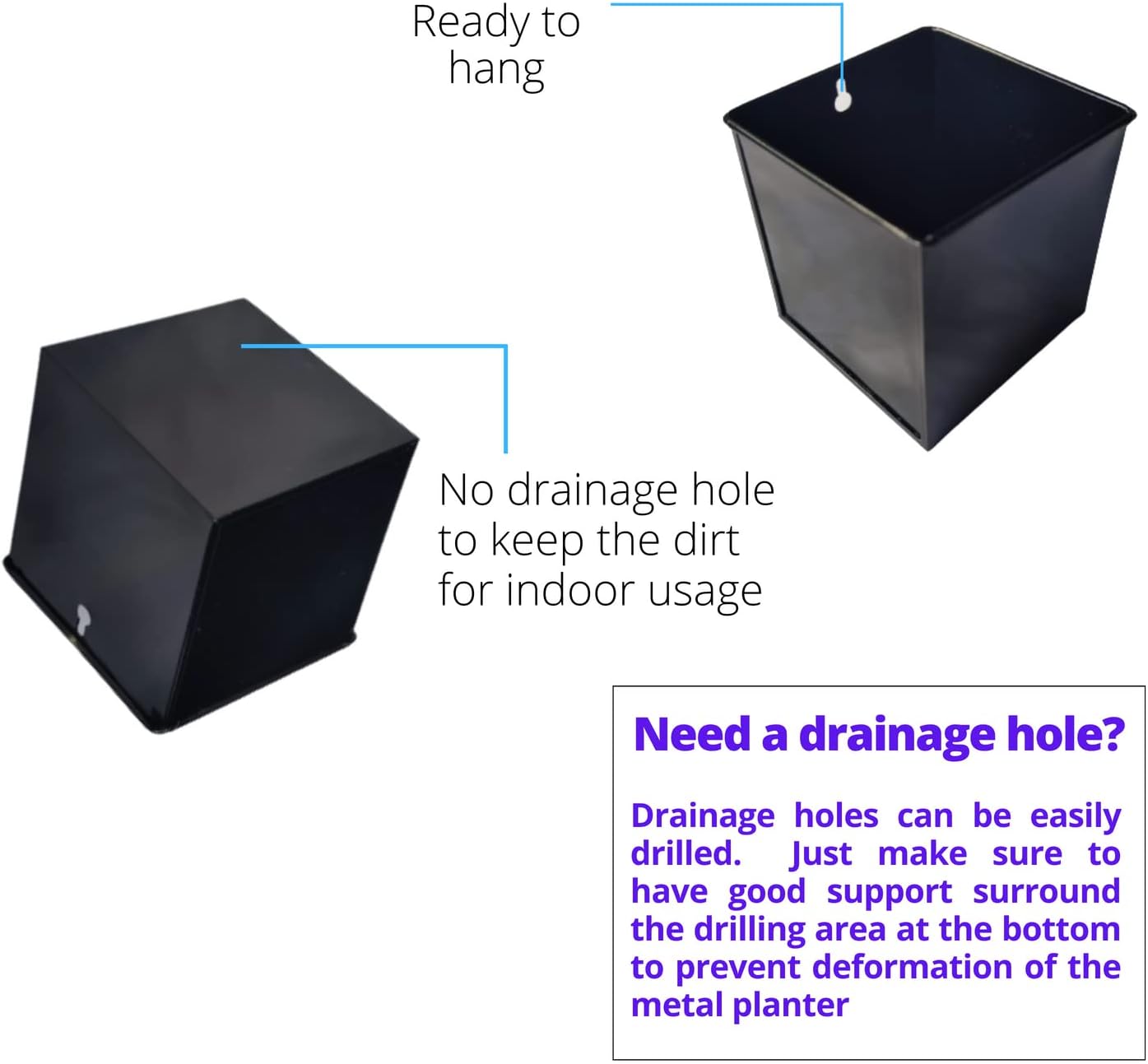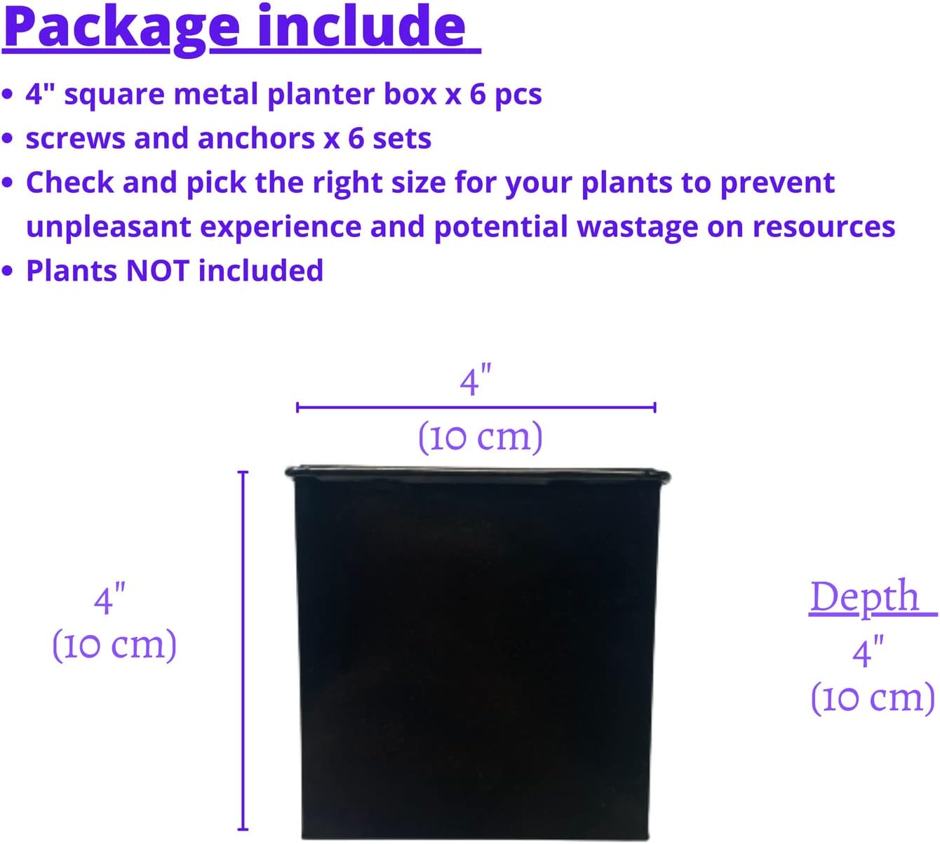 - 6-PACK SET: These black metal planters come in 6 pieces as a set. Please check image for detailed dimension to prevent unpleasant experience and potential wastage on resources. Plants NOT included
