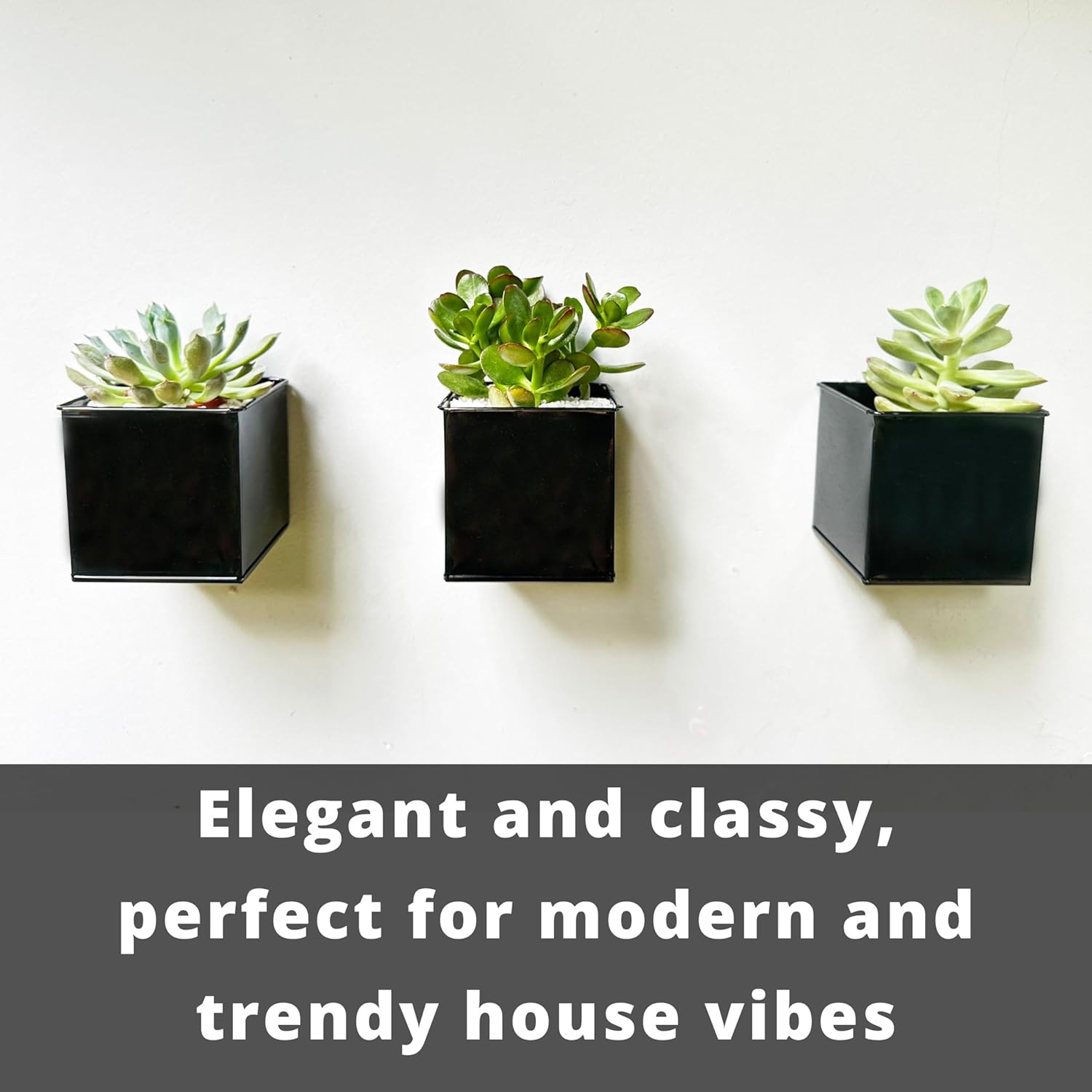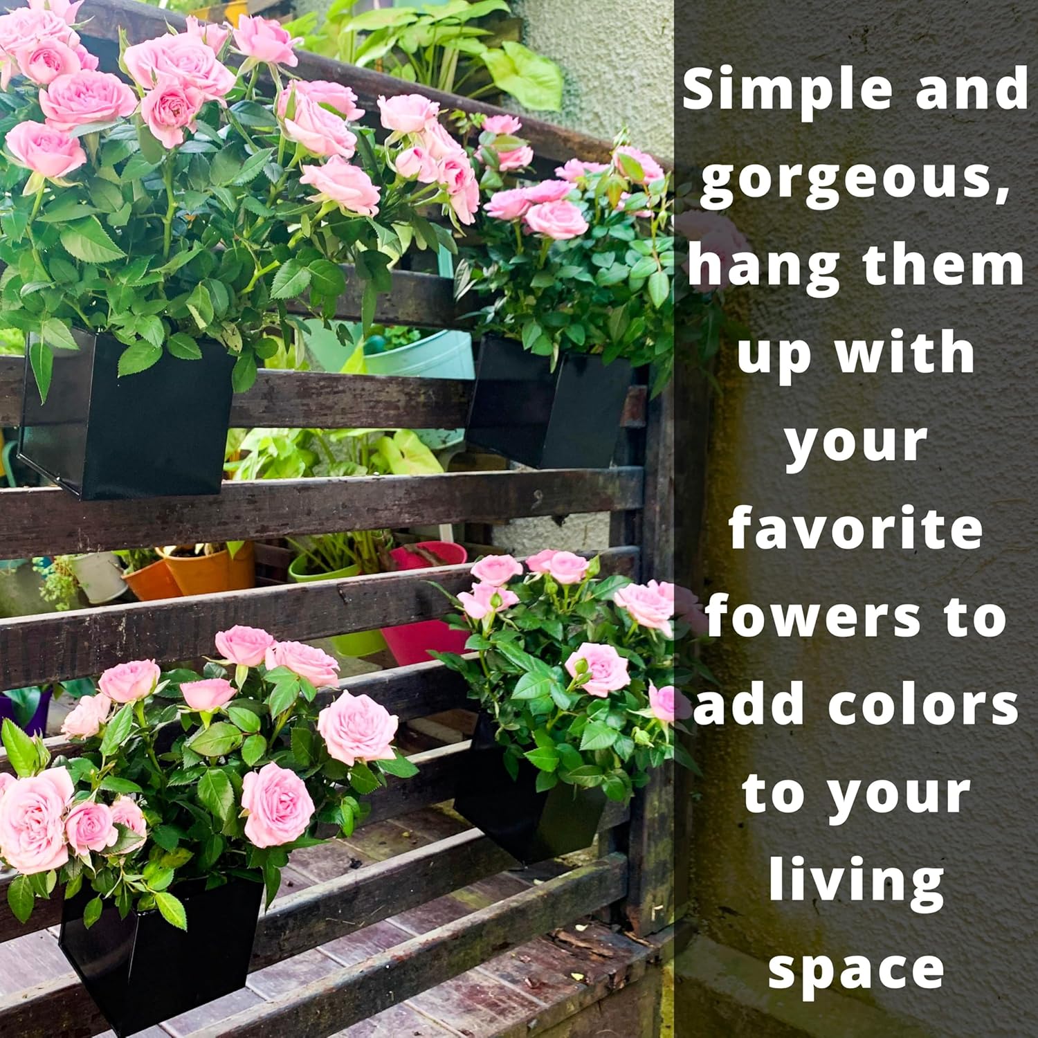 LaLaGreen Wall Planter - 6 Pack, 4 Inch Square Metal Wall Planter for Indoor Plants, Small Black Wall Mounted Flower Pots Outdoor Garden Decoration, Balcony Planters Railings Hanging Outdoor