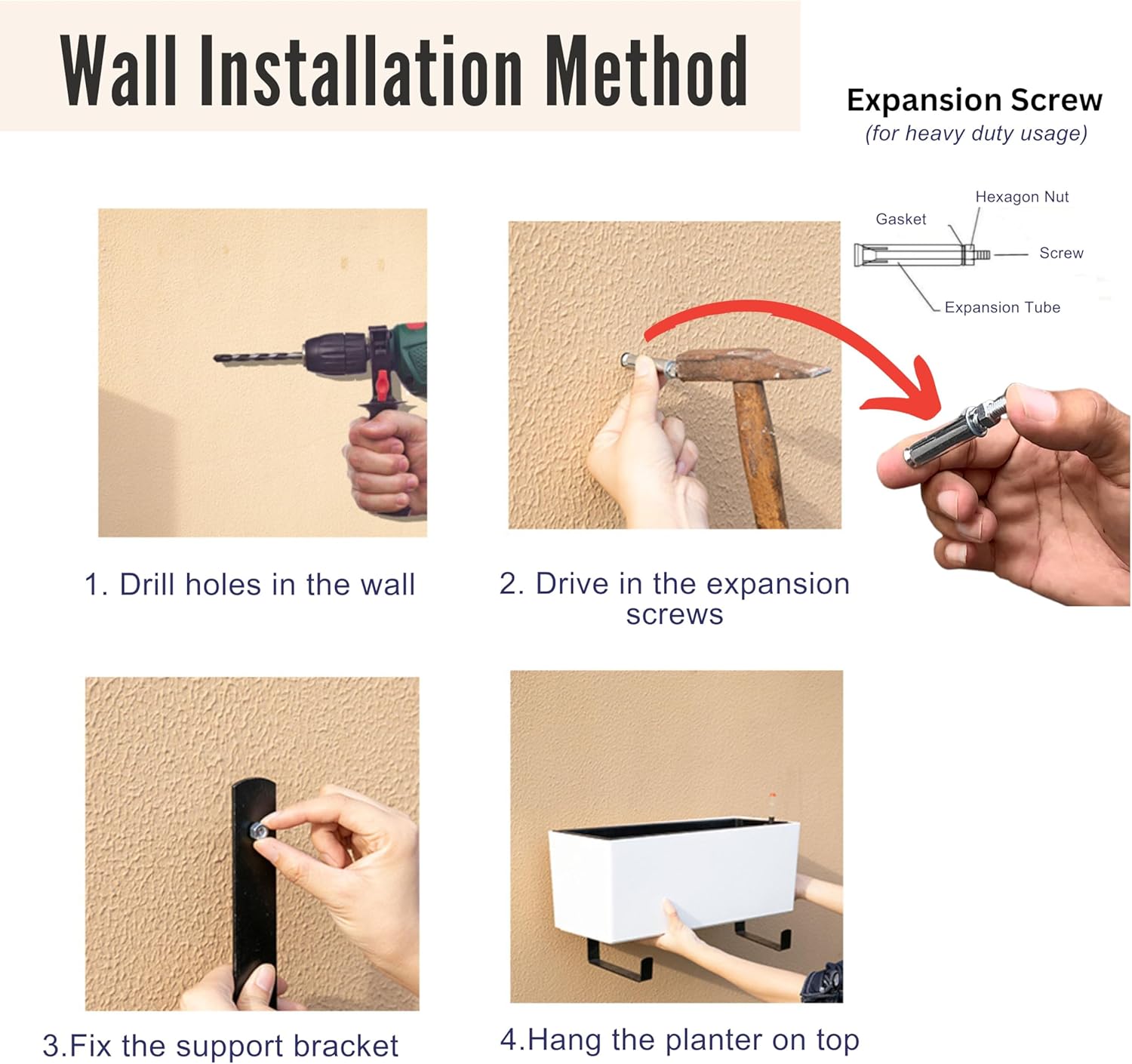 - STRONG AND ADJUSTABLE BRACKETS: Each set of this wall plant container comes with 2 pieces of heavy duty brackets. They can hold up to 30 lbs of weight and suitable for both indoor and outdoor garden