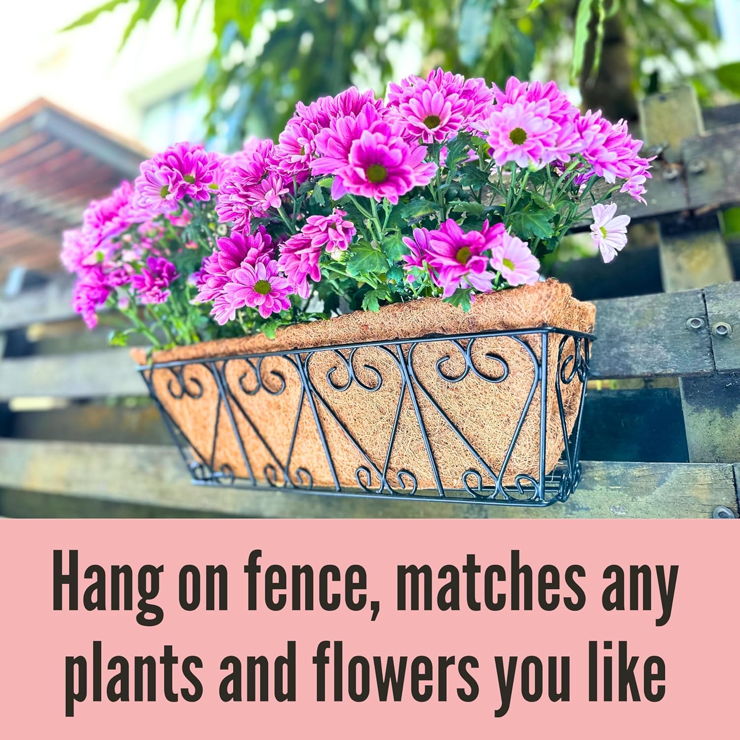- GREAT PLANTING MEDIA (material from natural coconut): This flat back wall mounted window flower box basket is filled with coco coir liners, which is excellent planting material for plants as it holds a good deal of water, provides superior drainage and good air ventilation for the roots all at the same time