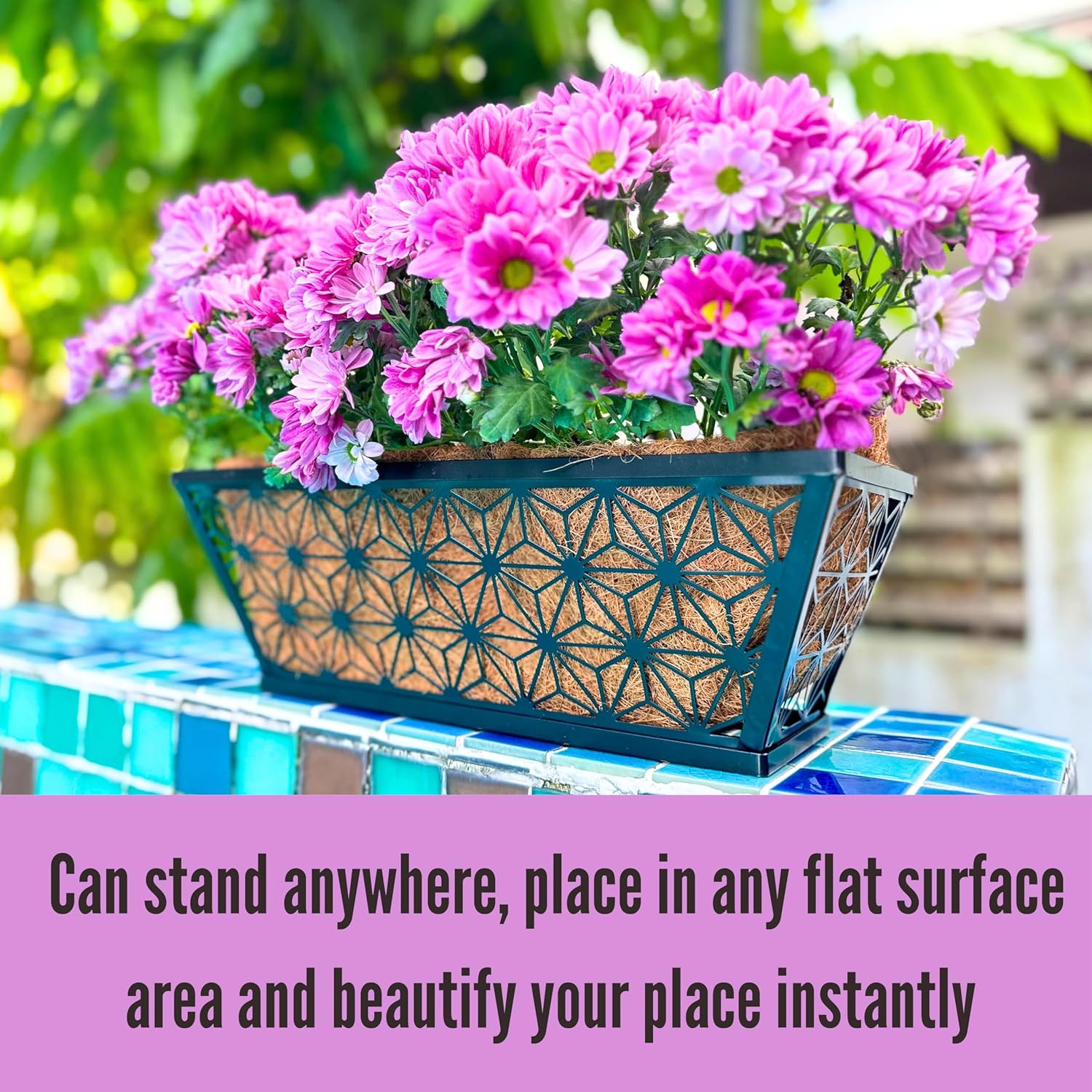 - MATERIAL FROM COCONUT: This flower box is filled with coco coir liners, which is excellent planting material for plants as it holds a good deal of water, and provides superior drainage and good air ventilation for the roots at the same time. Coir is a natural fiber extracted from coconut husks, making it a choice for your garden.