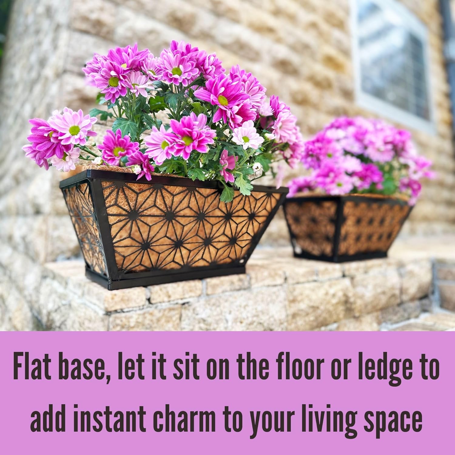 - MATERIAL FROM COCONUT: This planter boxes is filled with coco coir liners, which is excellent planting material for plants as it holds a good deal of water, and provides superior drainage and good air ventilation for the roots at the same time. Coir is a natural fiber extracted from coconut husks, making it a choice for your garden.