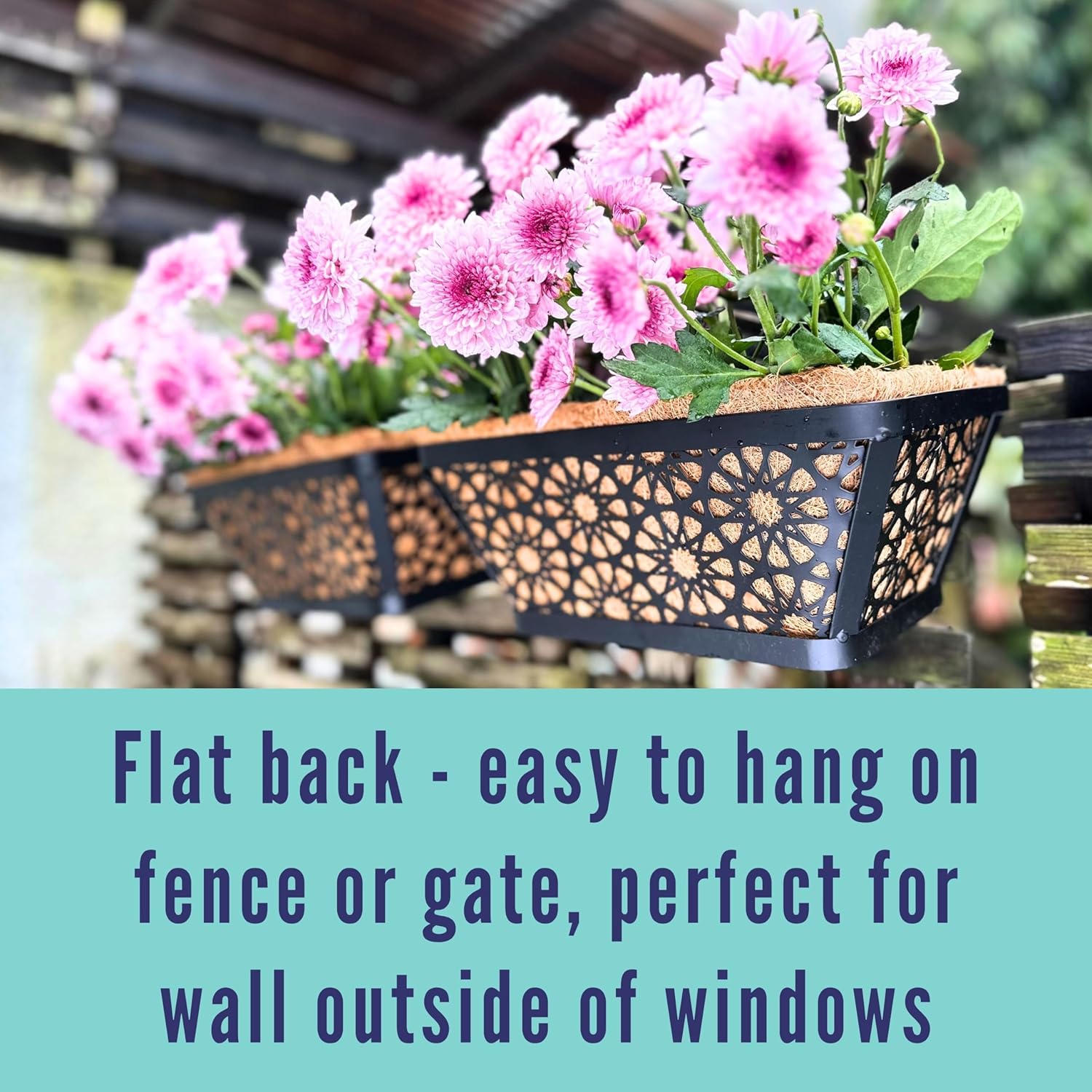 - MATERIAL FROM COCONUT: This flower box planter is filled with coco coir liners, which is excellent planting material for plants as it holds a good deal of water, provides superior drainage and good air ventilation for the roots at the same time. Coir is a natural fiber extracted from coconut husks, making it a choice for your garden.