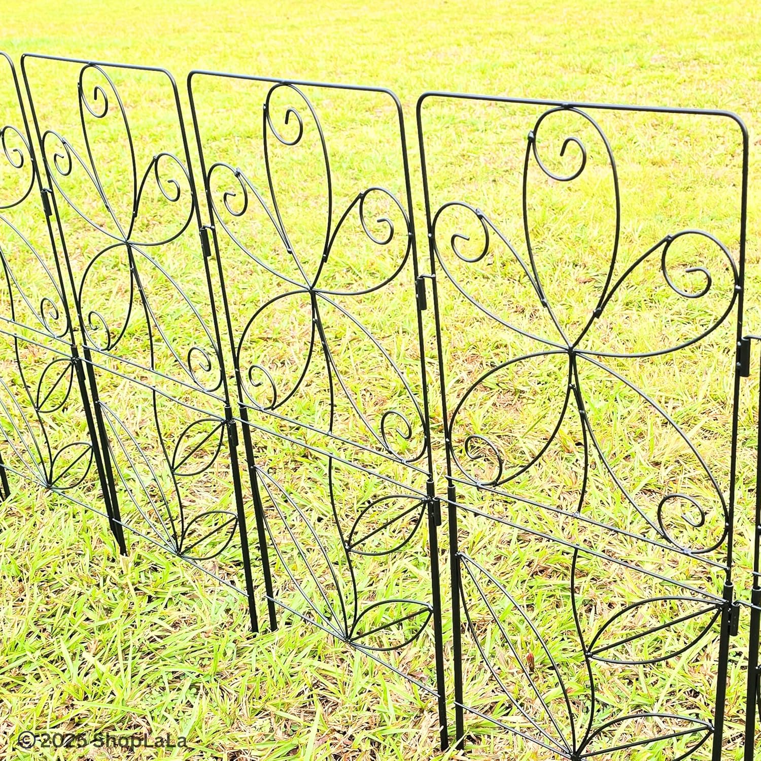 ShopLaLa Decorative Garden Fence (10 Panels) 12.5in(L) x 31in(H) Animal Barrier Fencing Rustproof Black Metal Wire Flower Edging for Landscape, Small Dog Fences Large No Dig Outdoor Yard Border D-F30C