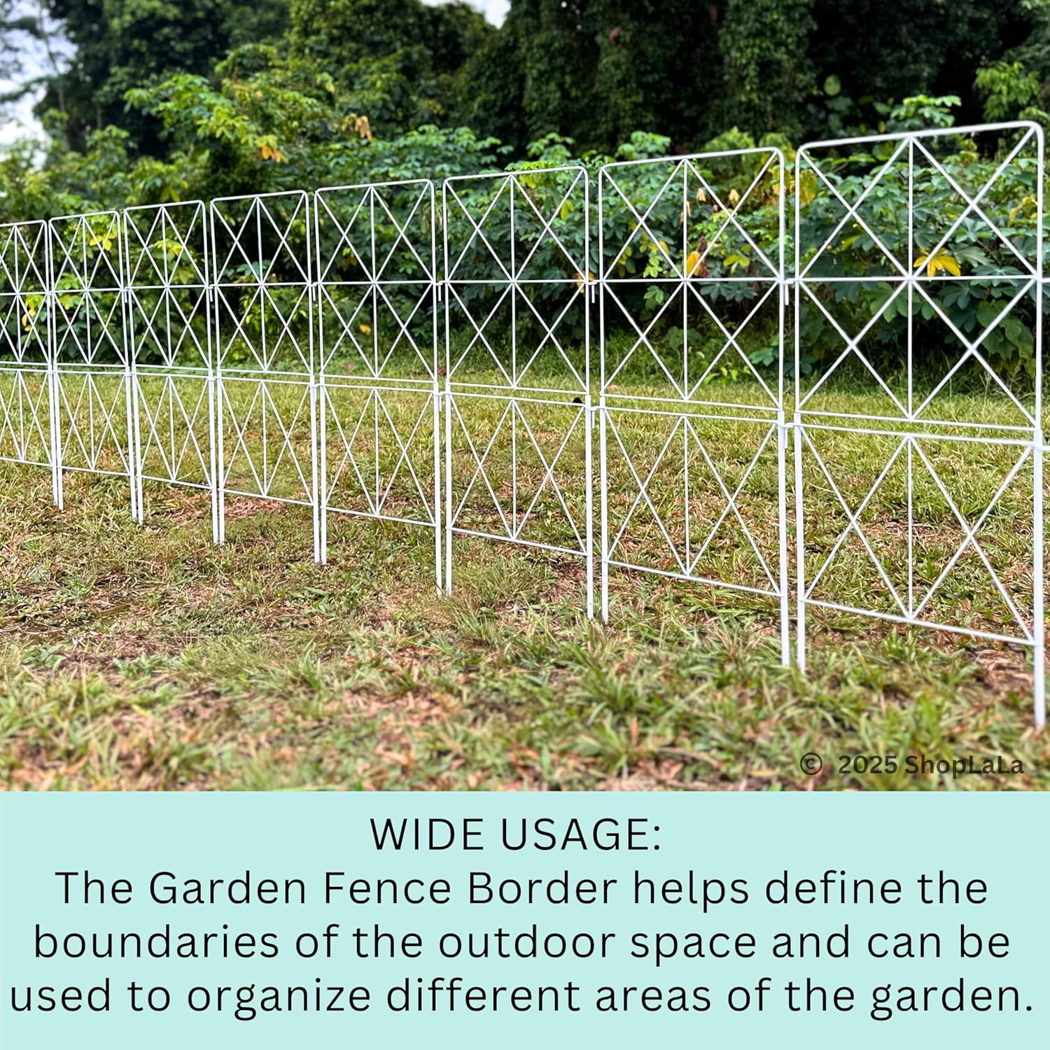 - VERSATILE GARDEN DECOR: This garden border edging fence enhances the look of your yard, patio, or garden. It provides an elegant yet functional touch to your outdoor space. While boosting aesthetic appeal, it also offers essential protection and clear boundaries. Perfect for any garden, adding both style and security to your landscape.