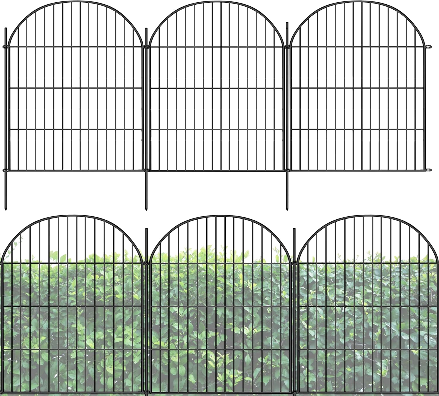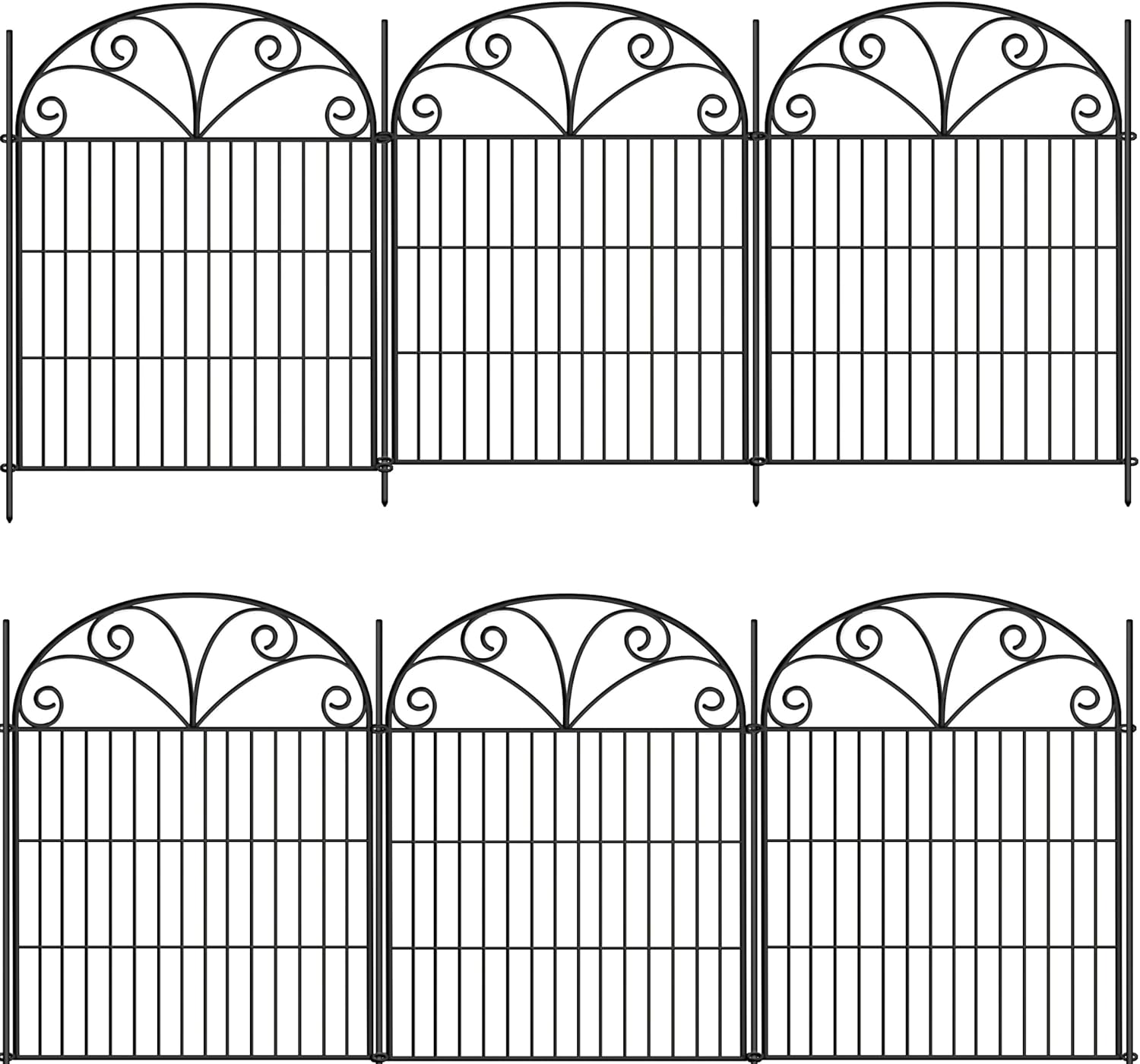 ShopLaLa Decorative Garden Fence (6 Panels) 28in(L) x 32in(H) Rustproof Black Metal No Dig Fences Small Dog Animal Barrier, Flower Edging for Landscape Large Tall Fencing Outdoor Garden Decor D-YA32