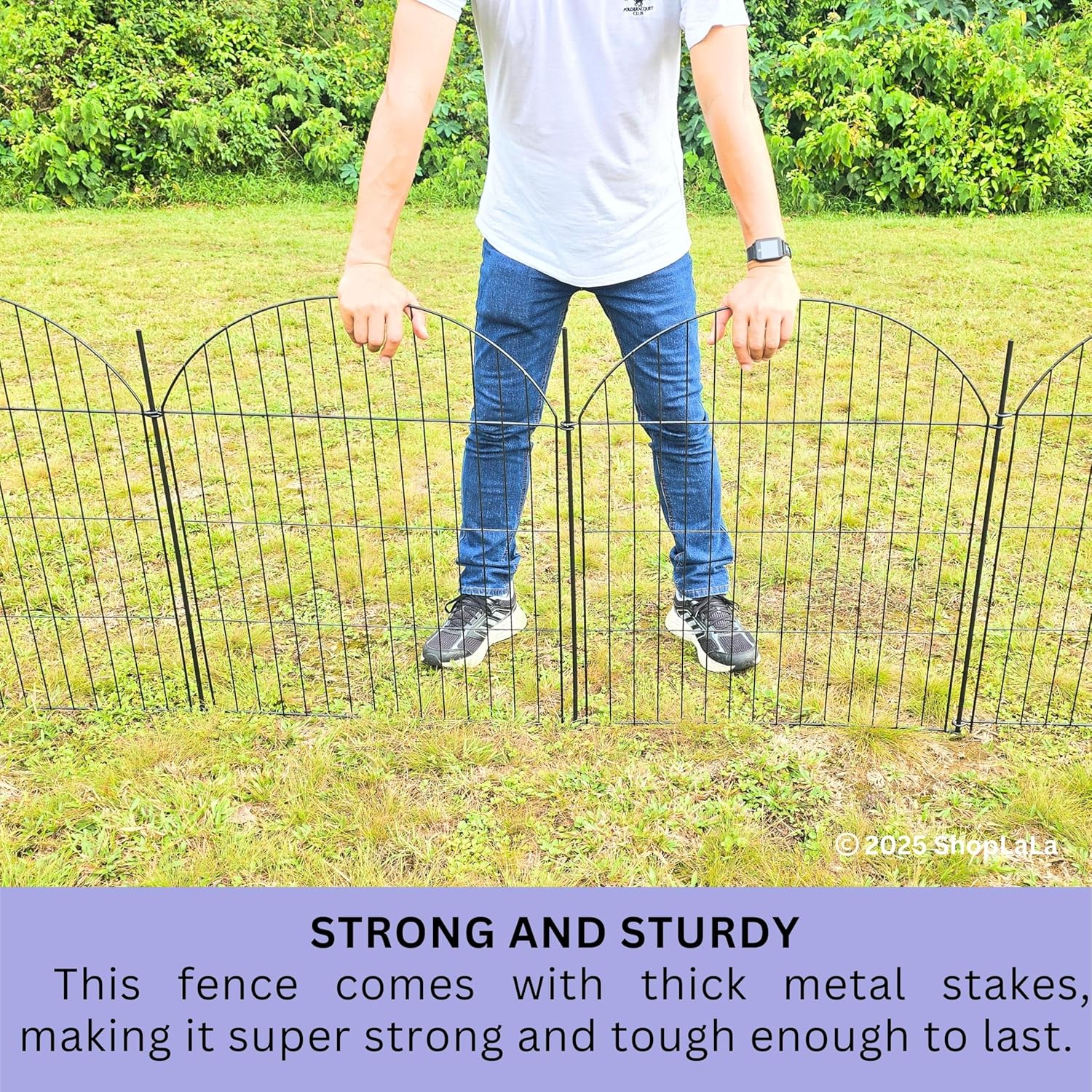 - RUSTPROOF METAL CONSTRUCTION: This metal fence panels is made from durable white metal wire, ensuring long-lasting use. The metal is coated with a rustproof finish to withstand various weather conditions. This protective layer guarantees that the fence remains intact and attractive over time. Perfect for maintaining a sturdy and appealing boundary in your garden.