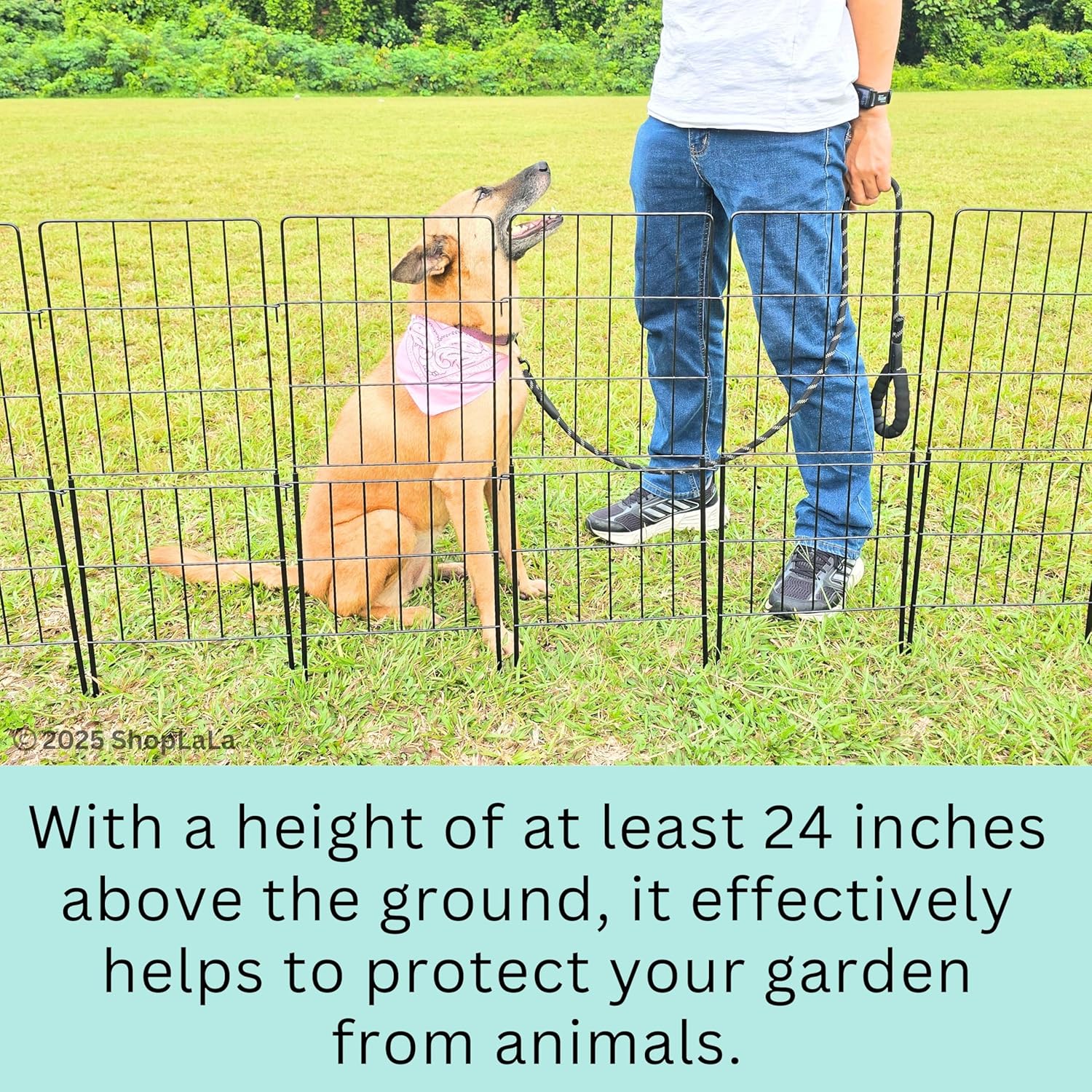 ShopLaLa Decorative Garden Fence Outdoor (10 Panels) 12.5in(L) x 31in(H) Animal Barrier Fencing Rustproof Black Metal Wire Flower Edging for Landscape, Small Dog No Dig Fences Backyard Gate D-F30A