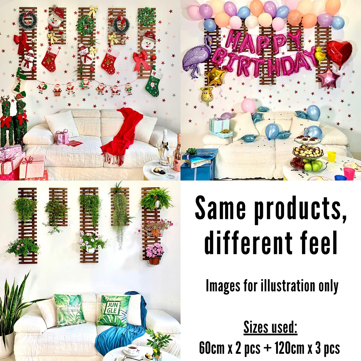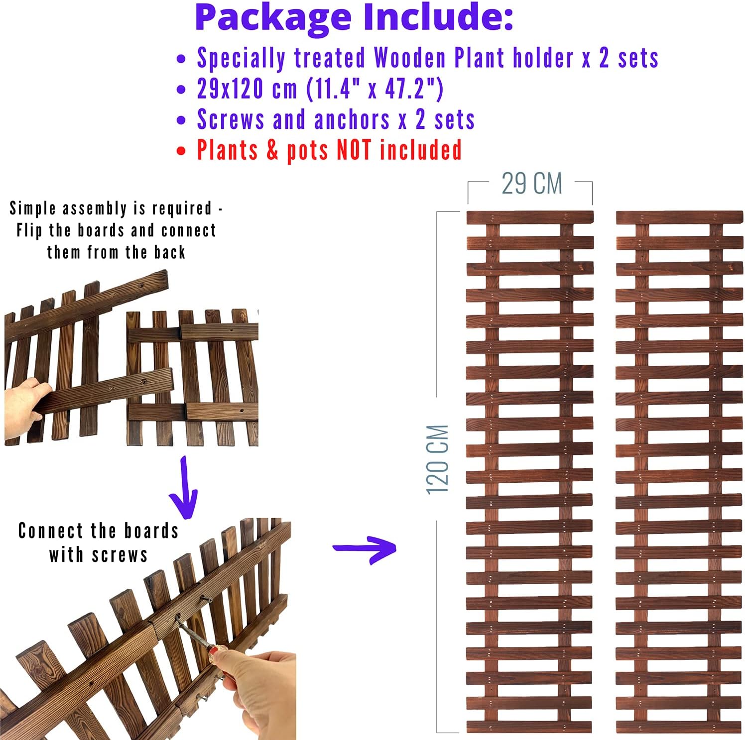 - 29x120cm (11.4" x 47.2") x 2 pcs. Plants, flowers, pots, decorations are NOT included