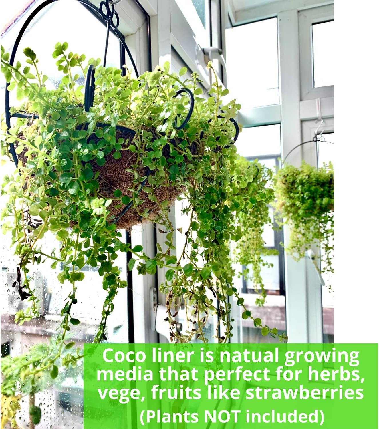 - MATERIAL FROM COCONUT - This flat back balcony planters railing hanging basket is filled with coco coir liners, which is excellent planting material for plants as it holds a good deal of water, provides superior drainage and good air ventilation for the roots
