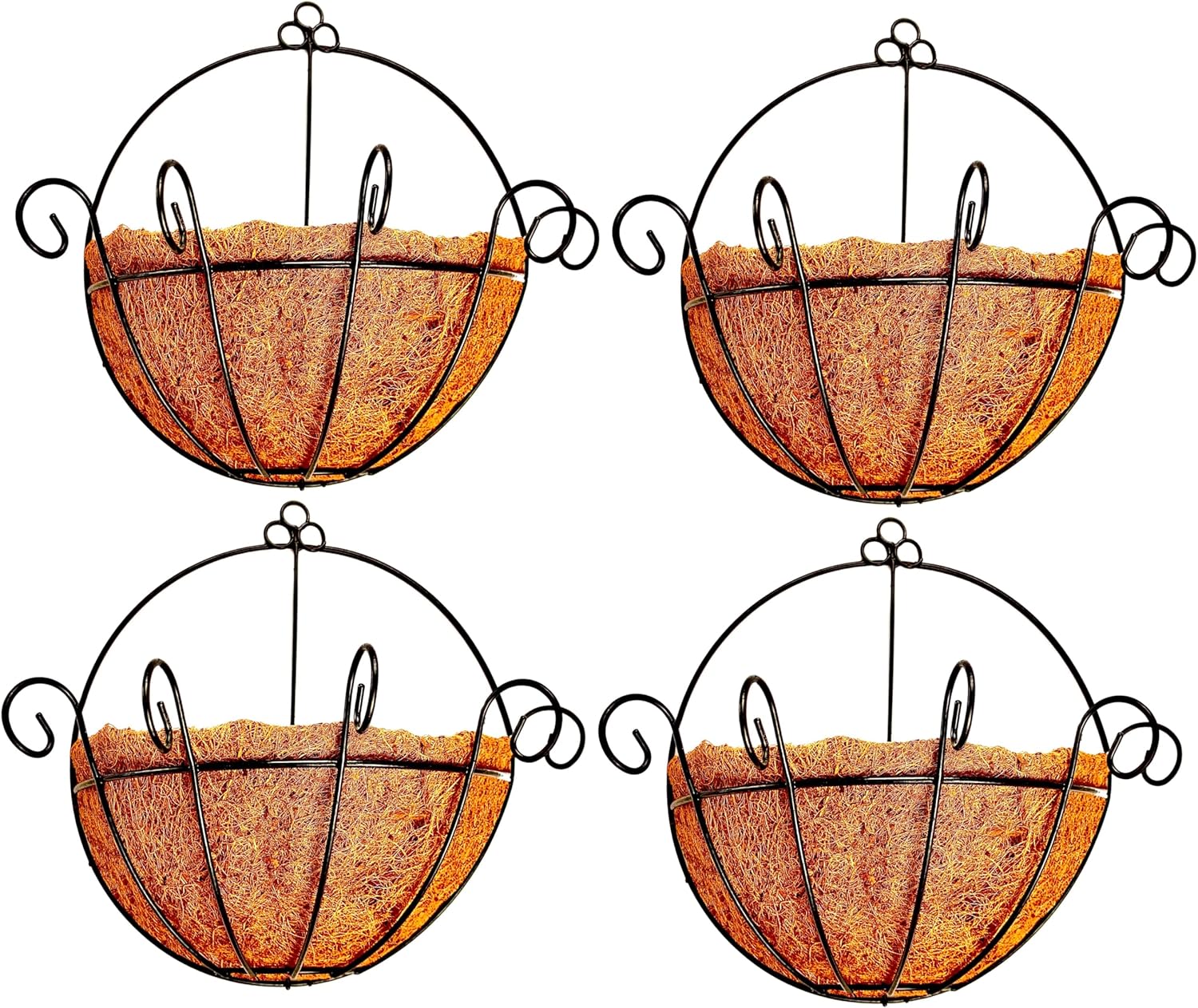 Shoplala Wall Planters for Outdoor Plants (4 Pack, 10 Inch) Metal Black Wire Flower Baskets with Coco Liner, Fence Hanging Planter Balcony Over Deck Porch Railing Rail Patio Modern Herb Outside Garden